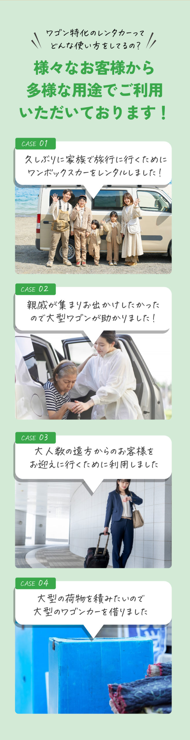 弊社は、ワゴン車に特化したレンタカーサービスを提供しています。
